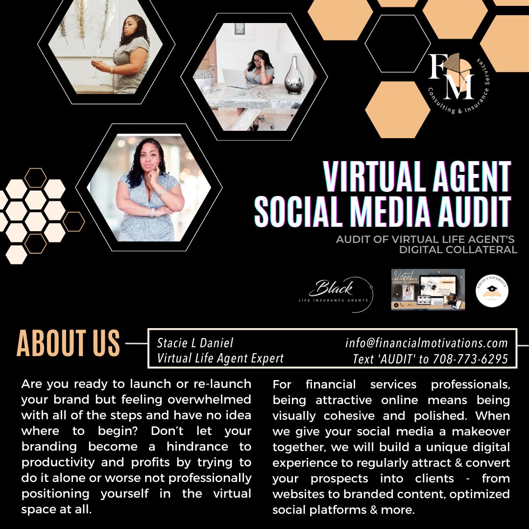 This branding & messaging content analysis is for agents who struggle with social media content clarity & effective virtual marketing strategies. Without being able to articulate concisely who you serve and what policy/riders provide solutions to your ideal clients' financial fears and challenges in a way that moves them to take action, your virtual life agent dream will not become a reality.